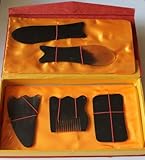 ???????? Natural Water Buffalo Horn Gua Sha (Guasha) Skin Scraping Board Set??5pcs (Random Color: Color May Beige Clear, Black or Beige Clear to Black)