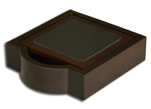 A beautiful accessory for the desk, office, conference room, or home! This set includes 4 walnut coasters with a black top-grain leather inlay. 4 non-slip foam dots underneath the holder ensure that the unit stays in place, and is safe for any furniture surface. This high-quality piece will keep drinks in their place, and is sure to impress!