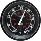 - Thermometer features include markings shown in both Fahrenheit and Celsius, German bi-metal coil and anodized alloy case; all are non-oil filled.